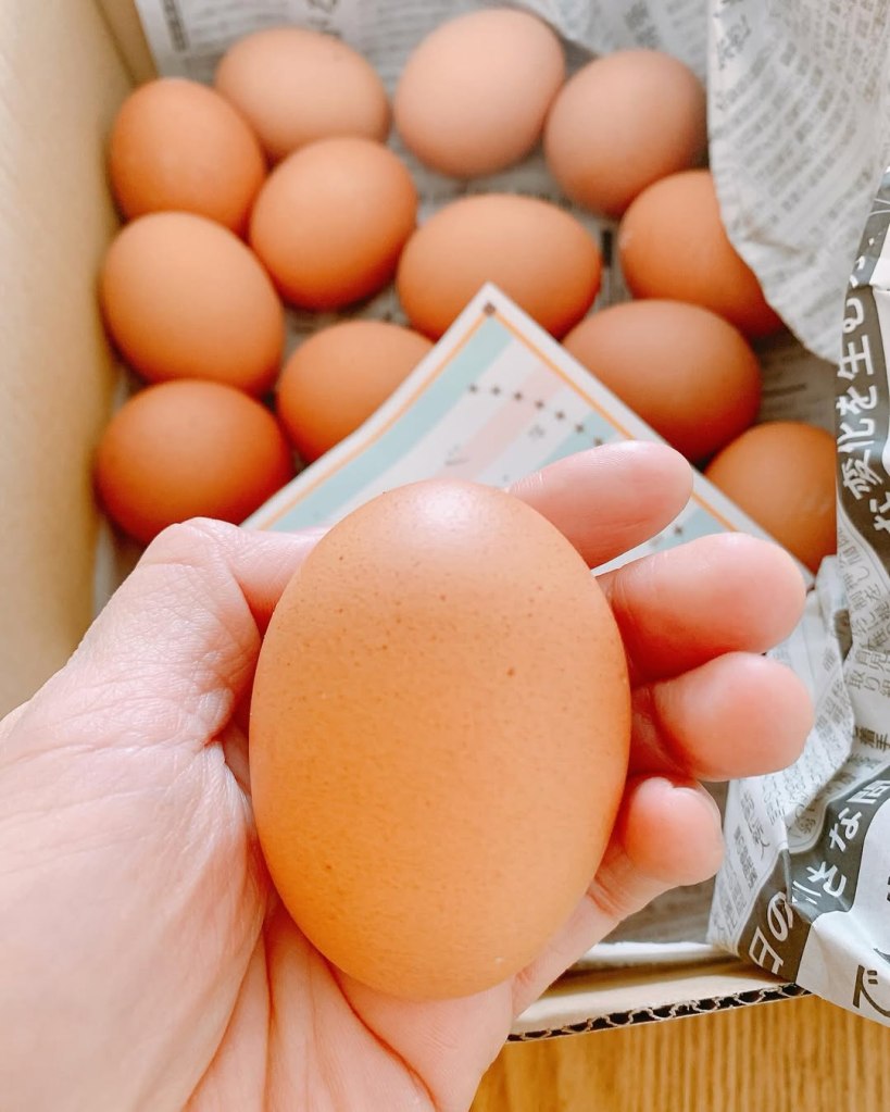 お客様が持ってきてくださった産みたて卵。