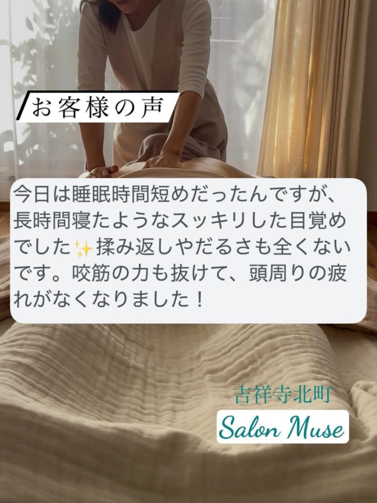 咬筋の力も抜けて、頭まわりの疲れがなくなりました!