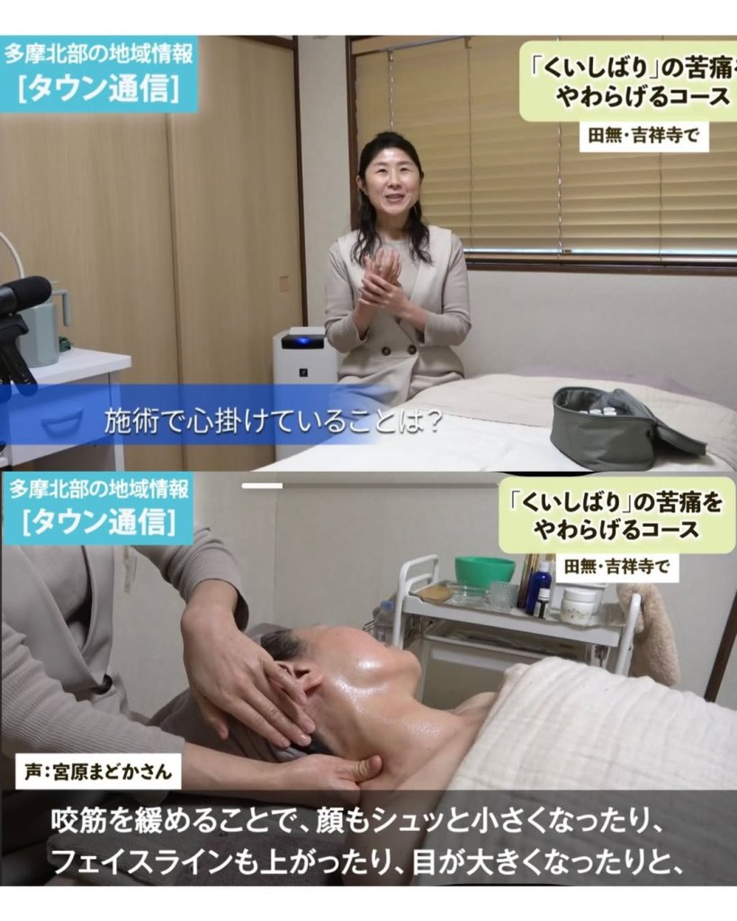 動画では、サロンの代表メニュー「食いしばりにフェイシャル」について、